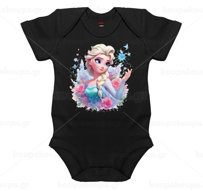 Elsa Princess, Βρεφικό φορμάκι μωρού, 0-18 μηνών, ΜΑΥΡΟ, 100% Organic Cotton, κοντομάνικο