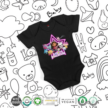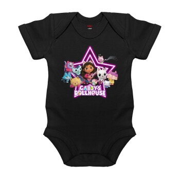 Gabby Dollhouse, Βρεφικό φορμάκι μωρού, 0-18 μηνών, ΜΑΥΡΟ, 100% Organic Cotton, κοντομάνικο