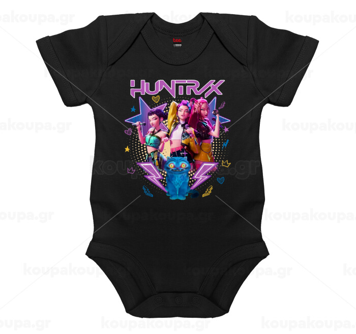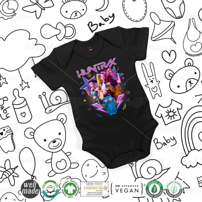 Huntrix K-pop series, Βρεφικό φορμάκι μωρού, 0-18 μηνών, ΜΑΥΡΟ, 100% Organic Cotton, κοντομάνικο