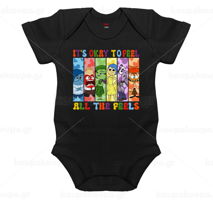 Inside Out It's Okay To Feel All The Feels , Βρεφικό φορμάκι μωρού, 0-18 μηνών, ΜΑΥΡΟ, 100% Organic Cotton, κοντομάνικο