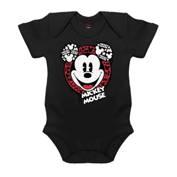 Mickey Mouse, Βρεφικό φορμάκι μωρού, 0-18 μηνών, ΜΑΥΡΟ, 100% Organic Cotton, κοντομάνικο