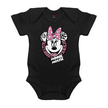 Minnie mouse, Βρεφικό φορμάκι μωρού, 0-18 μηνών, ΜΑΥΡΟ, 100% Organic Cotton, κοντομάνικο