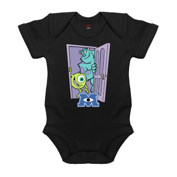 Monster inc, Βρεφικό φορμάκι μωρού, 0-18 μηνών, ΜΑΥΡΟ, 100% Organic Cotton, κοντομάνικο