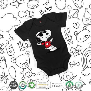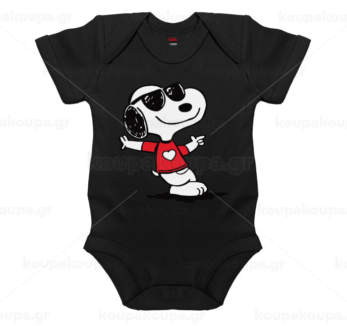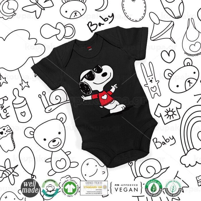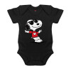 Snoopy καρδούλα, Βρεφικό φορμάκι μωρού, 0-18 μηνών, ΜΑΥΡΟ, 100% Organic Cotton, κοντομάνικο