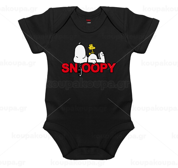 Snoopy sleep, Βρεφικό φορμάκι μωρού, 0-18 μηνών, ΜΑΥΡΟ, 100% Organic Cotton, κοντομάνικο
