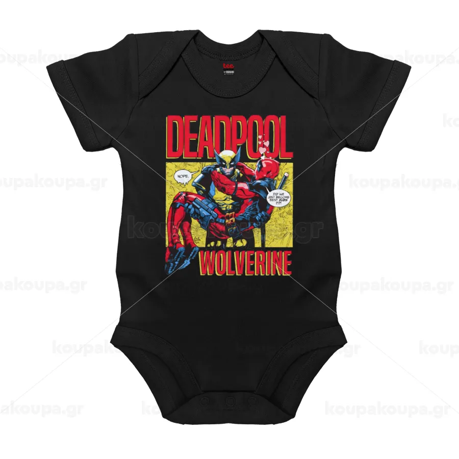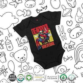 Superhero Deadpool Wolverine, Βρεφικό φορμάκι μωρού, 0-18 μηνών, ΜΑΥΡΟ, 100% Organic Cotton, κοντομάνικο