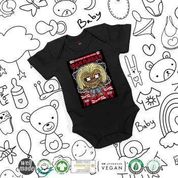 Iron maiden (eddie), Βρεφικό φορμάκι μωρού, 0-18 μηνών, ΜΑΥΡΟ, 100% Organic Cotton, κοντομάνικο