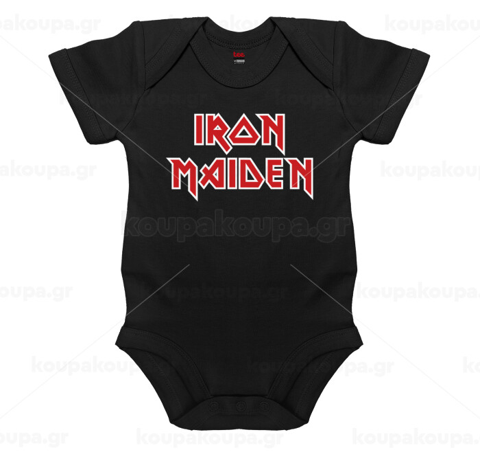 Iron maiden, Βρεφικό φορμάκι μωρού, 0-18 μηνών, ΜΑΥΡΟ, 100% Organic Cotton, κοντομάνικο