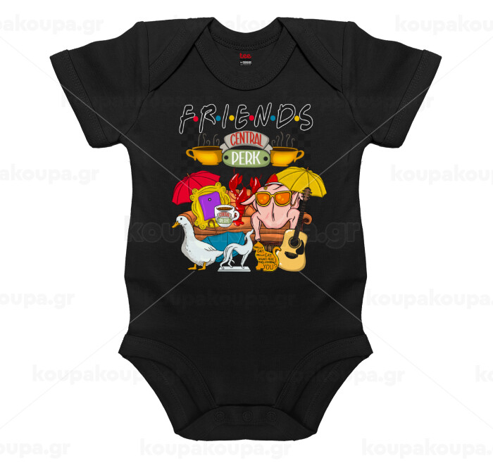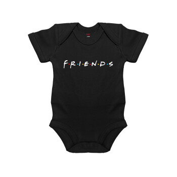 Friends, Βρεφικό φορμάκι μωρού, 0-18 μηνών, ΜΑΥΡΟ, 100% Organic Cotton, κοντομάνικο