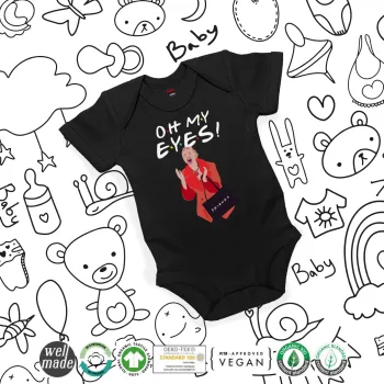 Friends,. oh my eyes Phoebe, Βρεφικό φορμάκι μωρού, 0-18 μηνών, ΜΑΥΡΟ, 100% Organic Cotton, κοντομάνικο