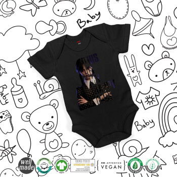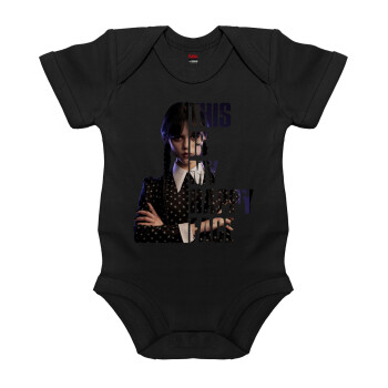 Wednesday, This is my happy face, Βρεφικό φορμάκι μωρού, 0-18 μηνών, ΜΑΥΡΟ, 100% Organic Cotton, κοντομάνικο