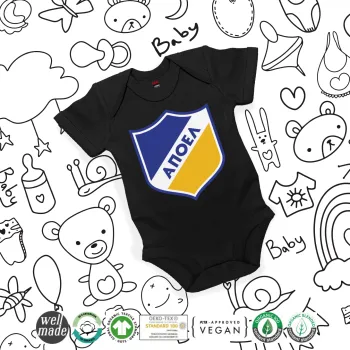 FC ΑΠΟΕΛ Λευκωσίας, Βρεφικό φορμάκι μωρού, 0-18 μηνών, ΜΑΥΡΟ, 100% Organic Cotton, κοντομάνικο