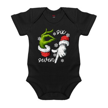 Christmas Meme SIX SEVEN (67), Βρεφικό φορμάκι μωρού, 0-18 μηνών, ΜΑΥΡΟ, 100% Organic Cotton, κοντομάνικο