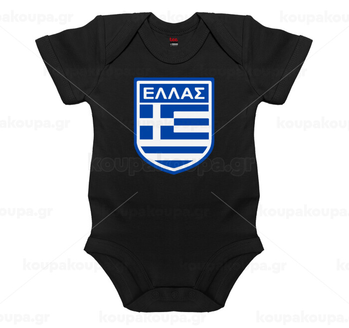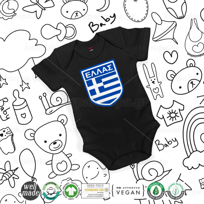 Hellas, Βρεφικό φορμάκι μωρού, 0-18 μηνών, ΜΑΥΡΟ, 100% Organic Cotton, κοντομάνικο