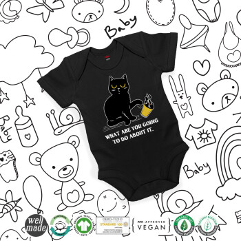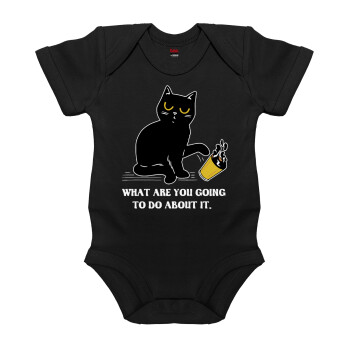 CAT, what are you going to do about it!, Βρεφικό φορμάκι μωρού, 0-18 μηνών, ΜΑΥΡΟ, 100% Organic Cotton, κοντομάνικο