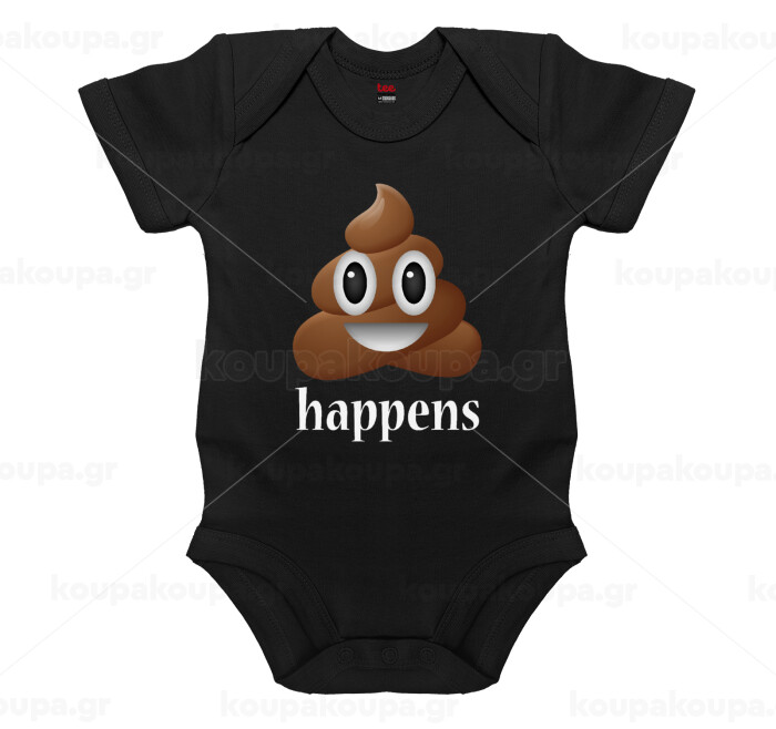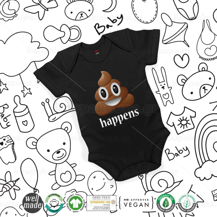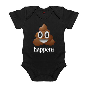 Shit Happens, Βρεφικό φορμάκι μωρού, 0-18 μηνών, ΜΑΥΡΟ, 100% Organic Cotton, κοντομάνικο
