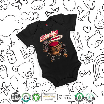Elden-Aid, Elden Ring inspired , Βρεφικό φορμάκι μωρού, 0-18 μηνών, ΜΑΥΡΟ, 100% Organic Cotton, κοντομάνικο