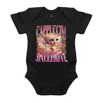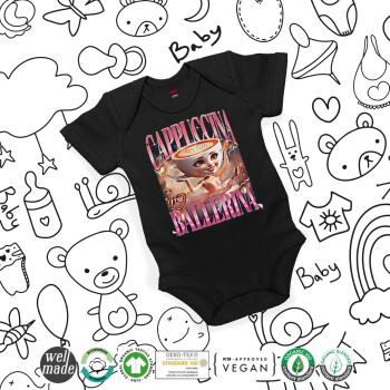 BALLERINA CAPUCHINA FUNK, Βρεφικό φορμάκι μωρού, 0-18 μηνών, ΜΑΥΡΟ, 100% Organic Cotton, κοντομάνικο
