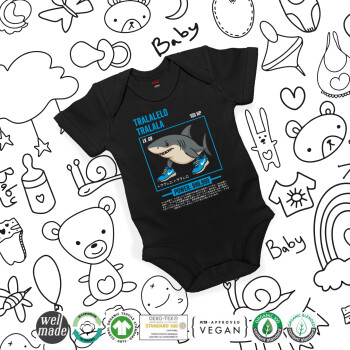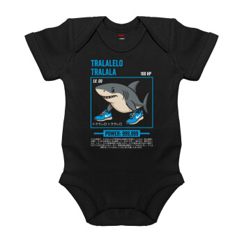Tralalero Tralala, Βρεφικό φορμάκι μωρού, 0-18 μηνών, ΜΑΥΡΟ, 100% Organic Cotton, κοντομάνικο
