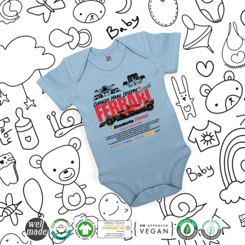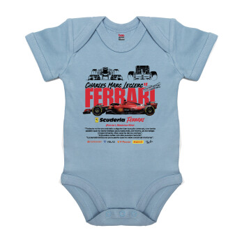 F1 Ferrari, Βρεφικό φορμάκι μωρού, 0-18 μηνών, Μπλε, 100% Organic Cotton, κοντομάνικο