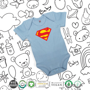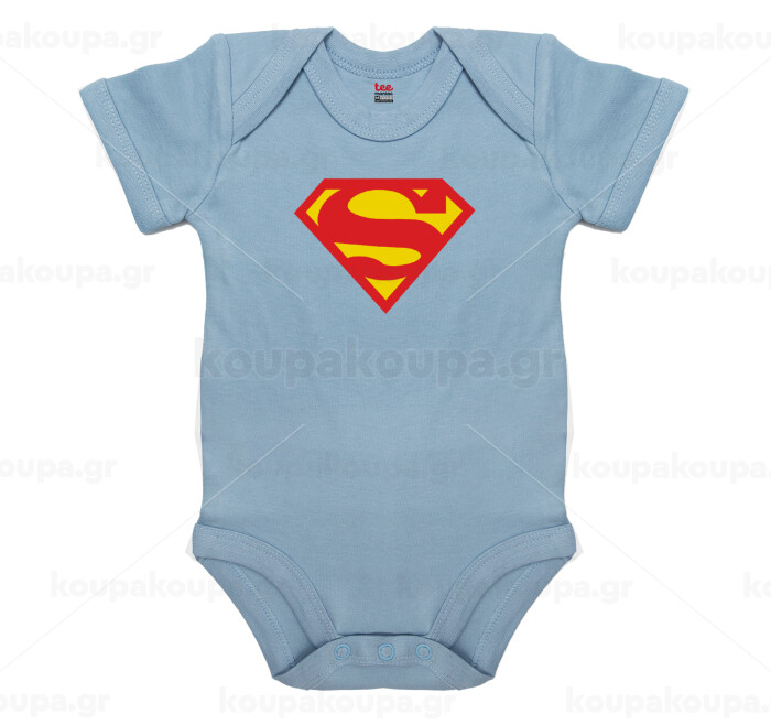 Superman, Βρεφικό φορμάκι μωρού, 0-18 μηνών, Μπλε, 100% Organic Cotton, κοντομάνικο