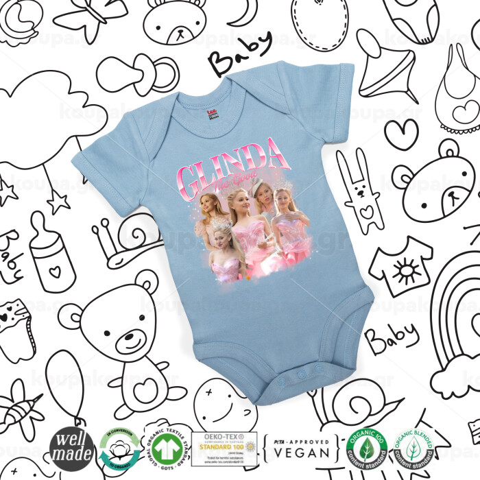 Wicked Glinda, Βρεφικό φορμάκι μωρού, 0-18 μηνών, Μπλε, 100% Organic Cotton, κοντομάνικο