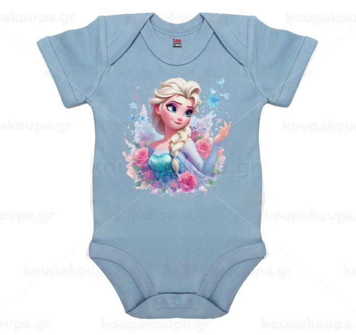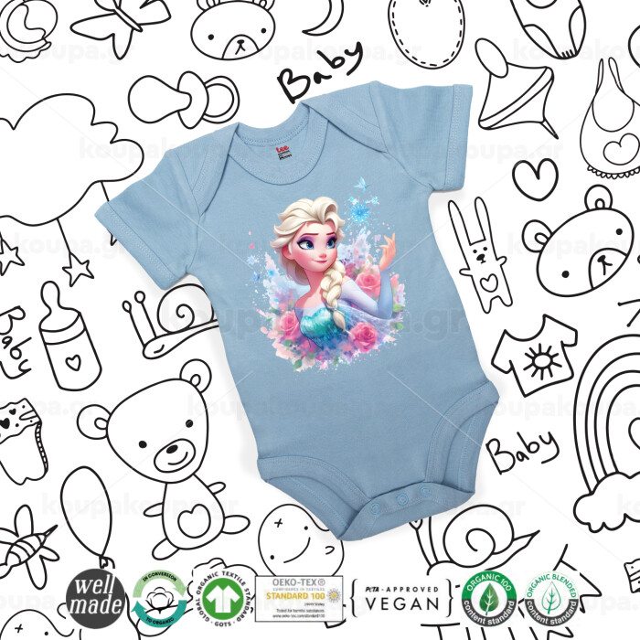 Elsa Princess, Βρεφικό φορμάκι μωρού, 0-18 μηνών, Μπλε, 100% Organic Cotton, κοντομάνικο