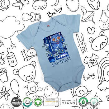 Huntrix Derpy the blue tiger, Βρεφικό φορμάκι μωρού, 0-18 μηνών, Μπλε, 100% Organic Cotton, κοντομάνικο