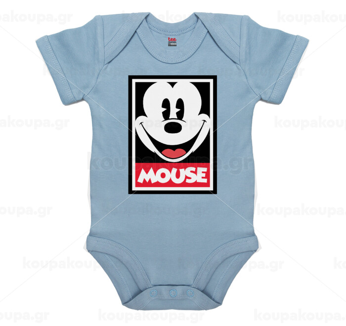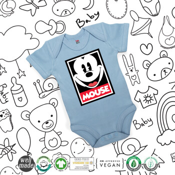 Mickey Mouse, Βρεφικό φορμάκι μωρού, 0-18 μηνών, Μπλε, 100% Organic Cotton, κοντομάνικο