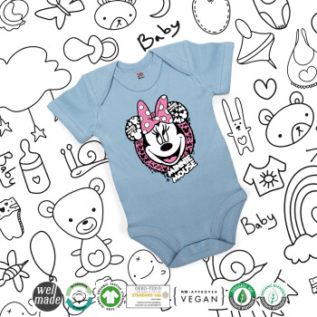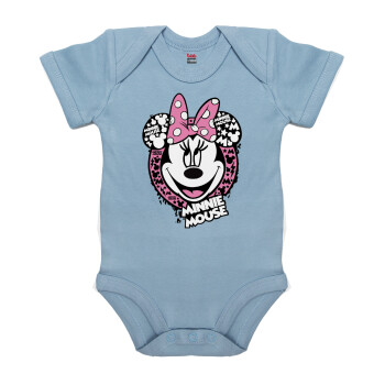 Minnie mouse, Βρεφικό φορμάκι μωρού, 0-18 μηνών, Μπλε, 100% Organic Cotton, κοντομάνικο
