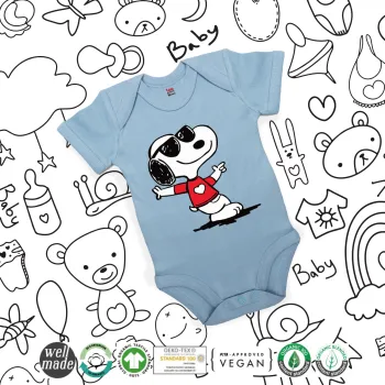 Snoopy καρδούλα, Βρεφικό φορμάκι μωρού, 0-18 μηνών, Μπλε, 100% Organic Cotton, κοντομάνικο