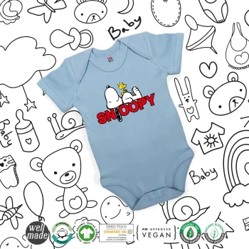 Snoopy sleep, Βρεφικό φορμάκι μωρού, 0-18 μηνών, Μπλε, 100% Organic Cotton, κοντομάνικο