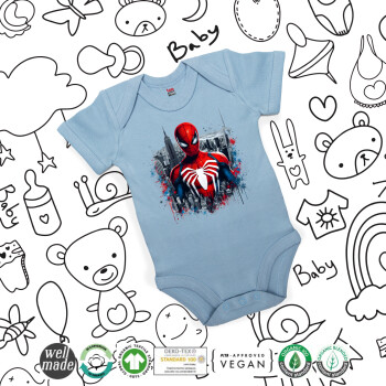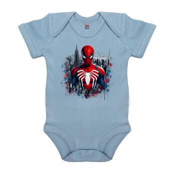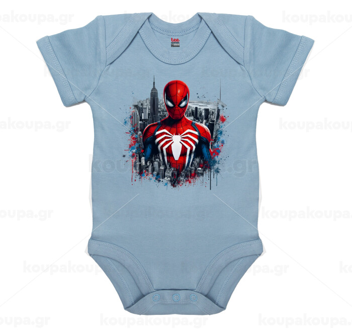 Spiderman City, Βρεφικό φορμάκι μωρού, 0-18 μηνών, Μπλε, 100% Organic Cotton, κοντομάνικο