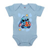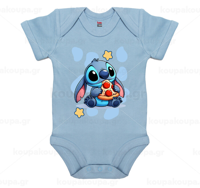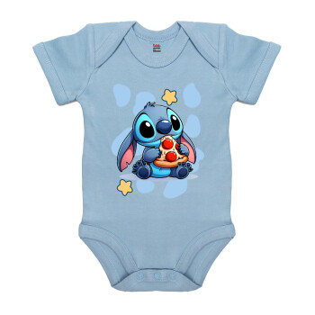 Stitch Pizza, Βρεφικό φορμάκι μωρού, 0-18 μηνών, Μπλε, 100% Organic Cotton, κοντομάνικο