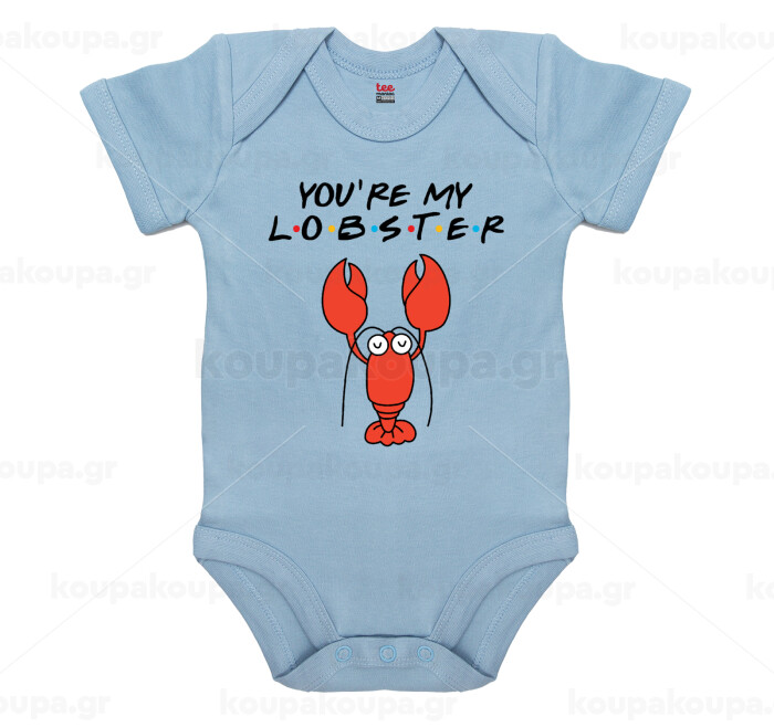 Friends you're my lobster, Βρεφικό φορμάκι μωρού, 0-18 μηνών, Μπλε, 100% Organic Cotton, κοντομάνικο