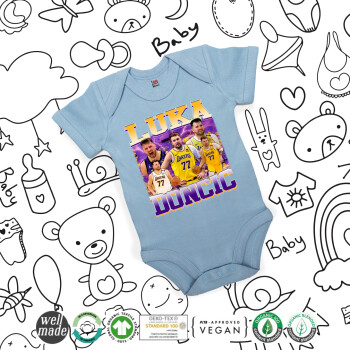 Luka Doncic Basketball , Βρεφικό φορμάκι μωρού, 0-18 μηνών, Μπλε, 100% Organic Cotton, κοντομάνικο