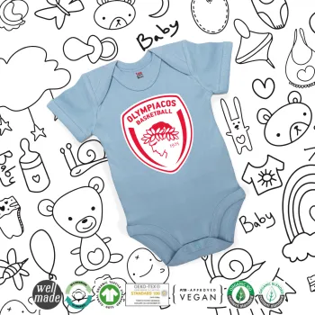 Olympiacos B.C., Βρεφικό φορμάκι μωρού, 0-18 μηνών, Μπλε, 100% Organic Cotton, κοντομάνικο