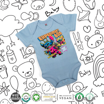 Stitch Experiment 626, Βρεφικό φορμάκι μωρού, 0-18 μηνών, Μπλε, 100% Organic Cotton, κοντομάνικο