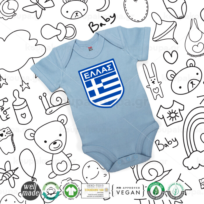 Hellas, Βρεφικό φορμάκι μωρού, 0-18 μηνών, Μπλε, 100% Organic Cotton, κοντομάνικο