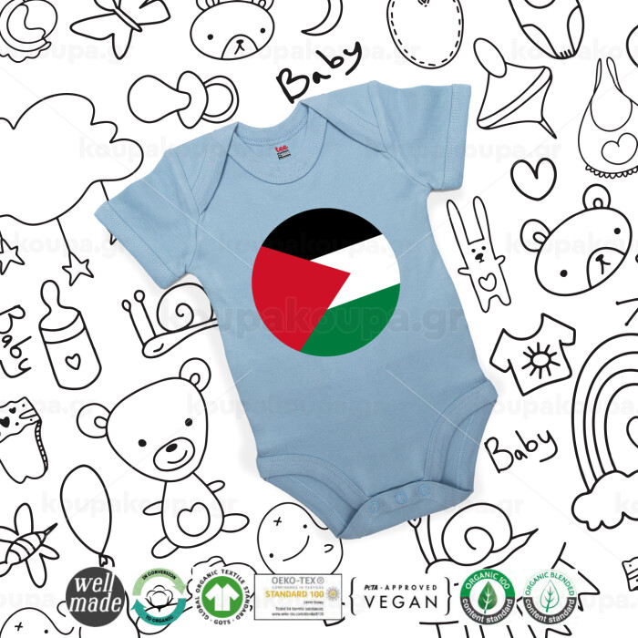 Palestine Flag, Βρεφικό φορμάκι μωρού, 0-18 μηνών, Μπλε, 100% Organic Cotton, κοντομάνικο