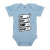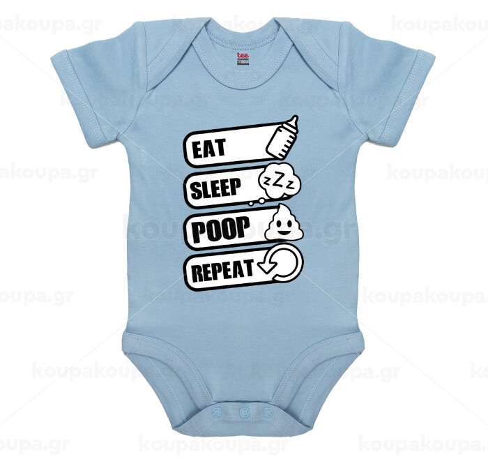 Eat, Sleep, Poop, Repeat, Βρεφικό φορμάκι μωρού, 0-18 μηνών, Μπλε, 100% Organic Cotton, κοντομάνικο