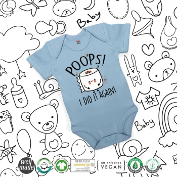 Poops!...I Did It Again, Βρεφικό φορμάκι μωρού, 0-18 μηνών, Μπλε, 100% Organic Cotton, κοντομάνικο