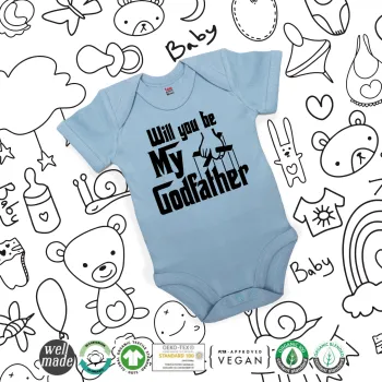 Will You Be My Godfather, Βρεφικό φορμάκι μωρού, 0-18 μηνών, Μπλε, 100% Organic Cotton, κοντομάνικο