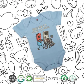 Respect your Elders, Βρεφικό φορμάκι μωρού, 0-18 μηνών, Μπλε, 100% Organic Cotton, κοντομάνικο