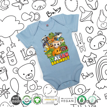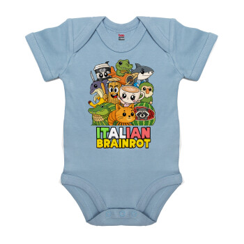 Italian Brainrot friends, Βρεφικό φορμάκι μωρού, 0-18 μηνών, Μπλε, 100% Organic Cotton, κοντομάνικο