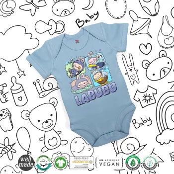 Labubu, Βρεφικό φορμάκι μωρού, 0-18 μηνών, Μπλε, 100% Organic Cotton, κοντομάνικο