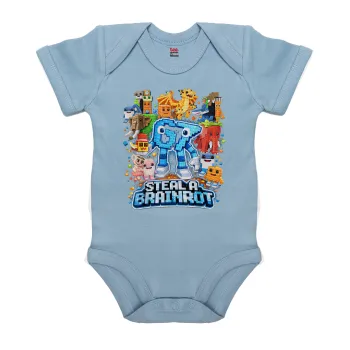 Steal a Brainrot Six Seven, Βρεφικό φορμάκι μωρού, 0-18 μηνών, Μπλε, 100% Organic Cotton, κοντομάνικο