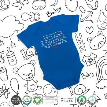 Stranger Things ABC, Βρεφικό φορμάκι μωρού, Μπλε Κοβαλτίου, 100% Organic Cotton, κοντομάνικο