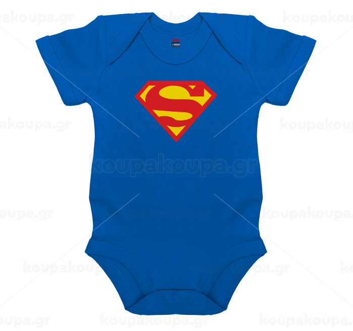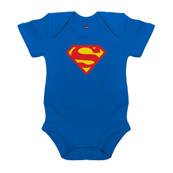 Superman, Βρεφικό φορμάκι μωρού, Μπλε Κοβαλτίου, 100% Organic Cotton, κοντομάνικο