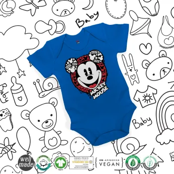 Mickey Mouse, Βρεφικό φορμάκι μωρού, Μπλε Κοβαλτίου, 100% Organic Cotton, κοντομάνικο